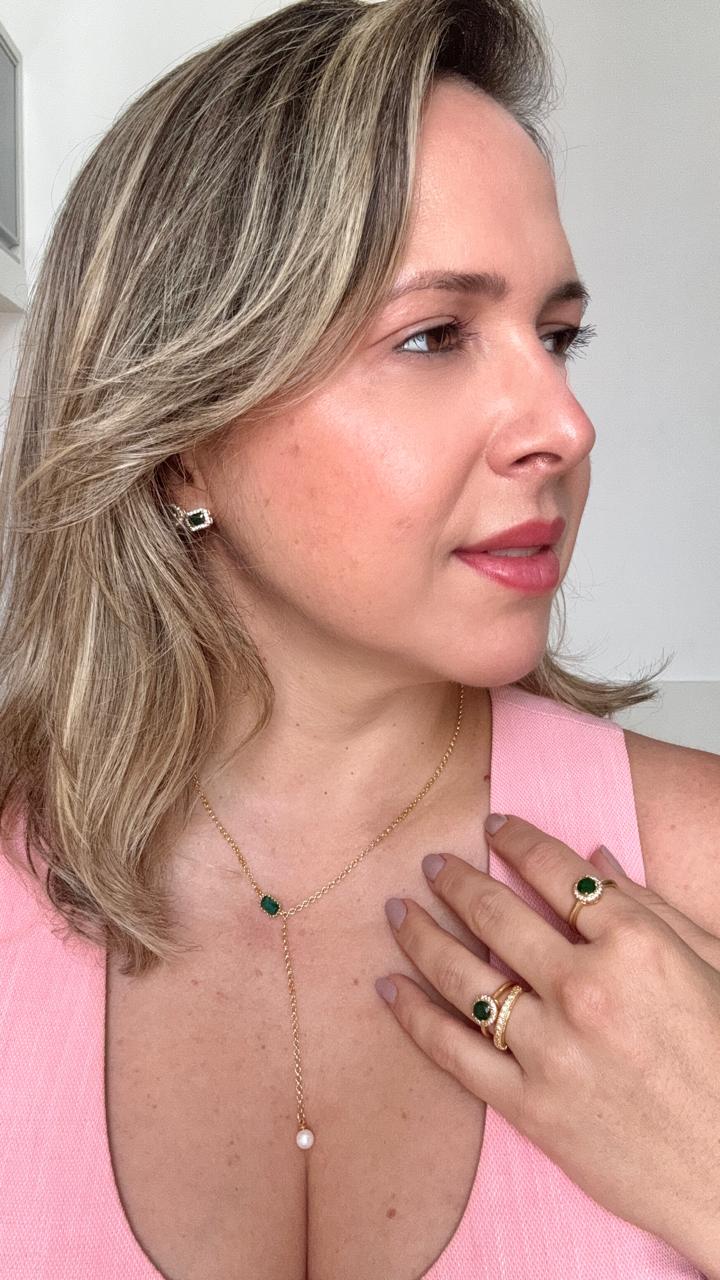 Banhado a ouro 18k e com peso aproximado de 3 g, possui acabamento refinado que valoriza ainda mais o contraste entre o dourado e o verde luminoso da pedra. Leve e confortável, é perfeito para uso diário ou para complementar produções elegantes com um ponto de cor marcante.