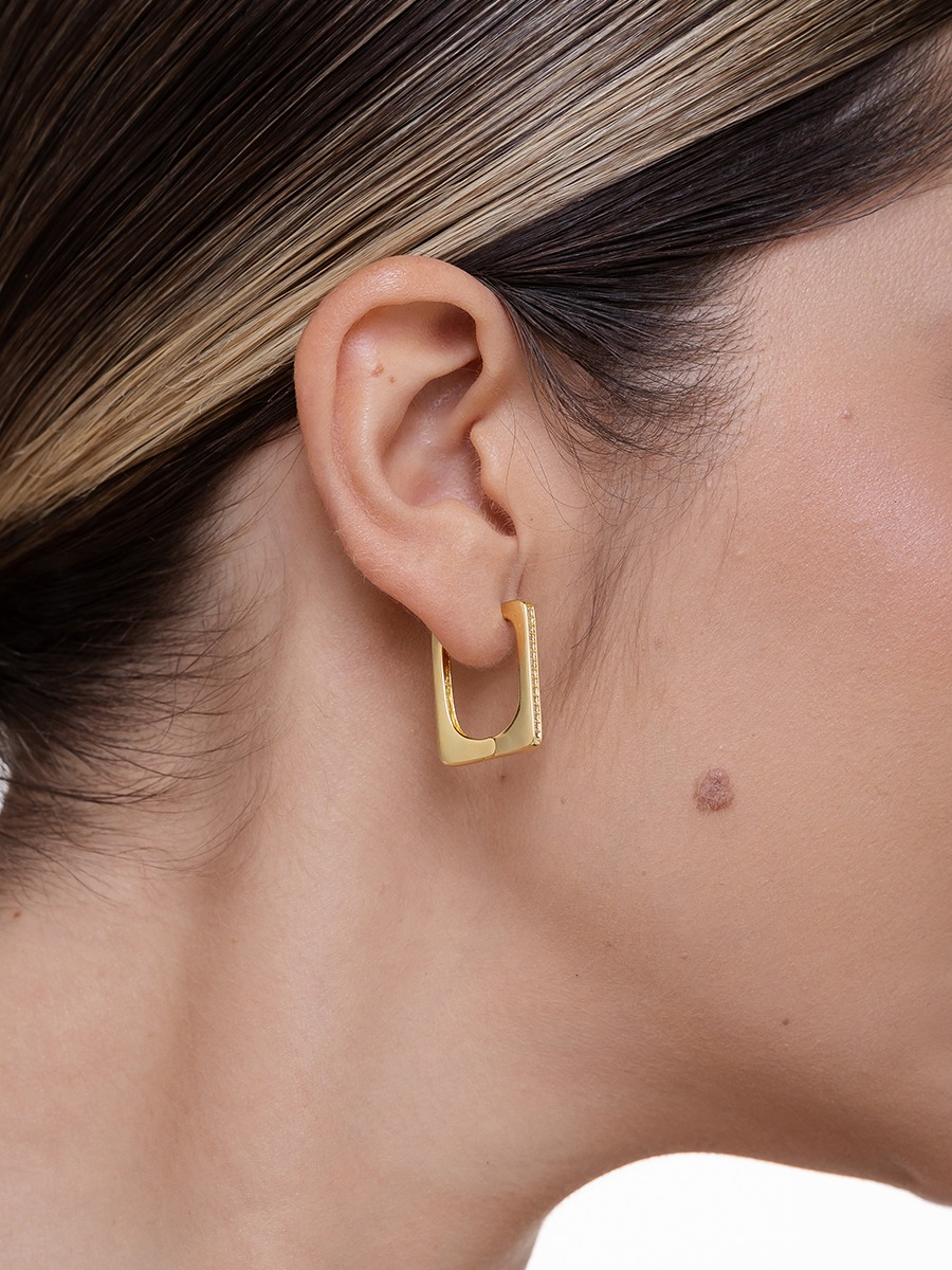 Brinco Argola Quadrada com Zircônias Banhado a Ouro 18k
