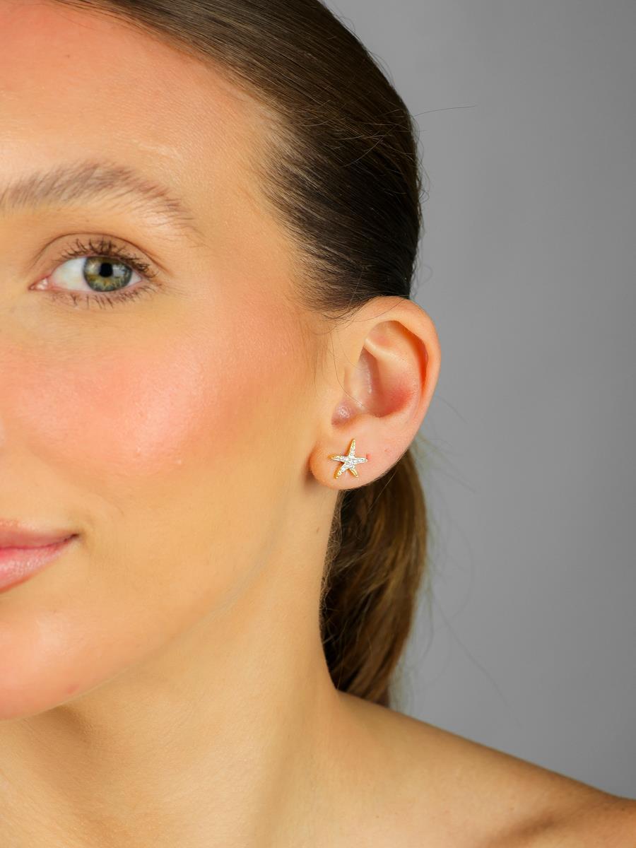 Brinco Estrela do Mar Cravejada Banhado a Ouro 18k