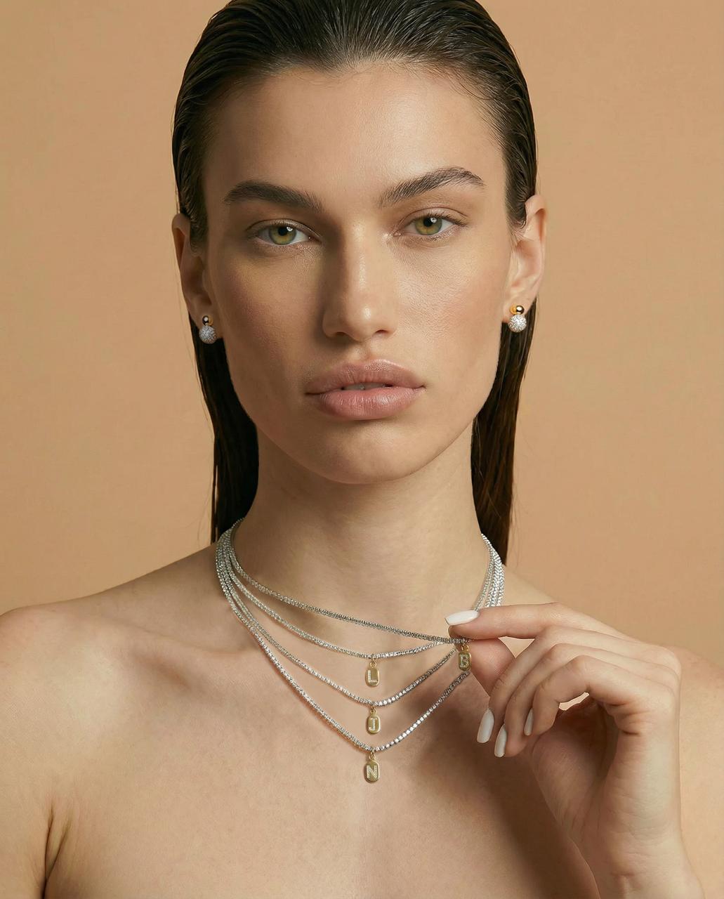 A Choker Riviera Letra Bicolor é a definição de elegância personalizada com um toque moderno e sofisticado. Composta por uma sequência de pedras que formam o clássico estilo riviera, a peça ganha destaque com a letra central em acabamento bicolor, trazendo exclusividade e identidade ao acessório.