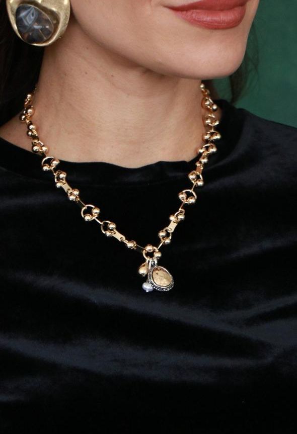 O destaque fica por conta do pingente central, que remete ao estilo relicário, adicionando charme e um toque vintage à peça. Versátil e atemporal, é ideal para compor produções refinadas, elevando o look com delicadeza e sofisticação.