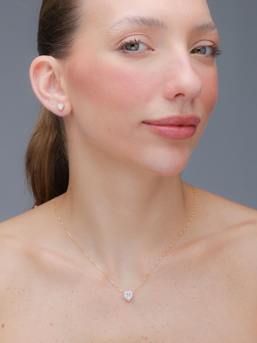 Conjunto com colar e brinco em formato de coração