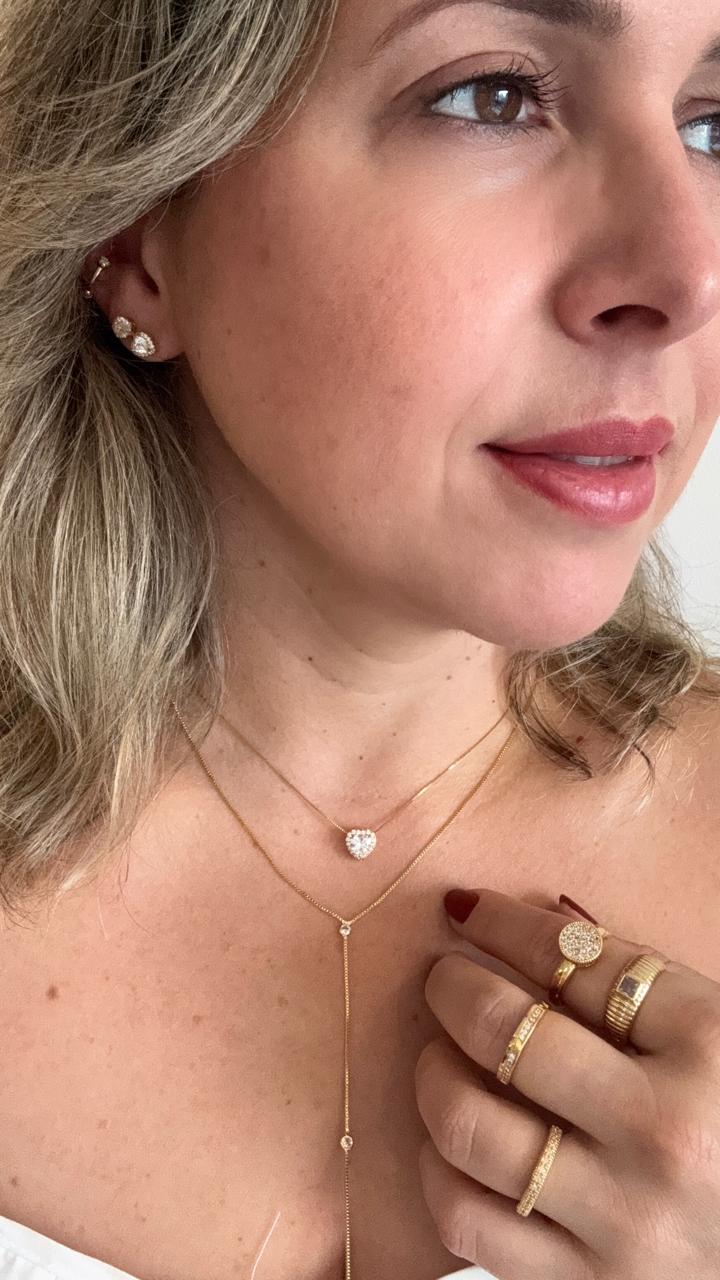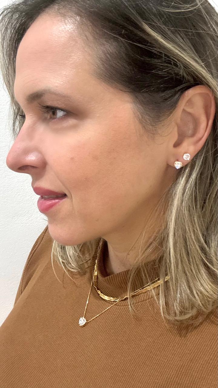 O Conjunto Coração Delicado Cravejado é a perfeita união entre romantismo e sofisticação. Com design em formato de coração e detalhes cravejados que refletem a luz com intensidade, a peça transmite brilho elegante e charme sutil, valorizando o visual com delicadeza e presença na medida certa.