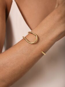 Com linhas delicadas e visual contemporâneo, o meio bracelete banhado a ouro 18k é a escolha ideal para quem busca estilo e elegância em uma única peça. Leve, confortável e perfeito para usar sozinho ou em mix de acessórios.