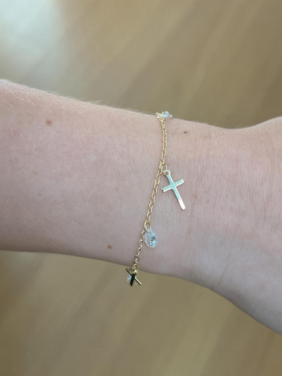 Pulseira Cruz com Ponto de Luz Banhada a Ouro 18k