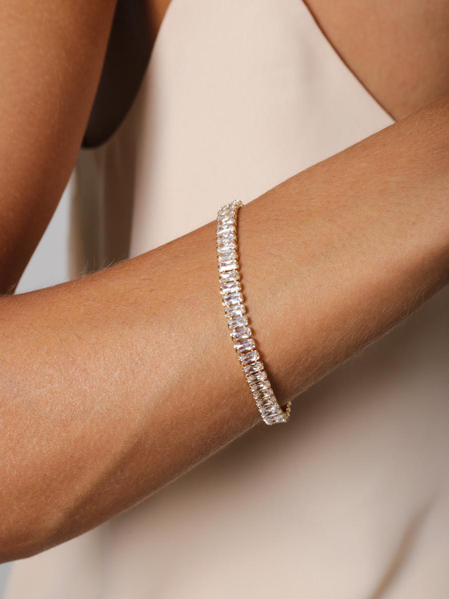 Elegante e impactante na medida certa, a Pulseira Riviera Baguette é a escolha perfeita para quem ama peças com brilho sofisticado. Com fileira contínua de zircônias no corte baguette, ela cria um efeito linear moderno que valoriza o pulso com muita classe.